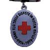 Знак из медного сплава в виде посеребренной и эмалированной петли. Сзади горизонтальная булавка.