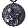Посеребренный мальтийский крест из цветного металла с надетым средним щитом. Крестообразные руки по краю обшиты чёрной эмалью и серебром.