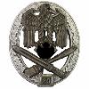 Широкая застежка из позолоченного цинка. (Позолота в основном прошла) Орел отдельно наклонился и старый серебряный. Сзади горизонтальная булавка. Снизу на среднем венке 2 проушины с тиснением. В них подвешены с небольшими кольцами рельефные, позолоченные звездные подвески из мелкого цинка. Проушины с тиснением на верхней кромке прицепа 2.