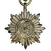 Высоко овальный, ажурный и полый рельефный знак, бронзованный из купала. Сзади вертикальная булавка и обозначение производителя.