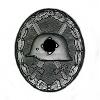 Крест из позолоченного цинка в виде 8-лучевого лучевого венка. В центре спереди расположен круглый щит. Через центр проходят 2 скрещённых античных меча, проходящих под щитом. На задней стороне по центру дугообразная круглая центральная часть и вертикальная булавка.
