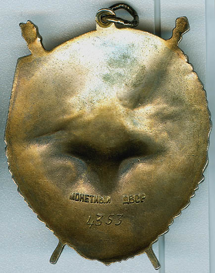 - Разновидность 1. Мы считаем, что данная разновидность могла быть изготовлена на Краснокамском Монетном Дворе и впоследствии быть передана на ММД для окончательной сборки (подвеска на колодку и упаковка). В слове МОНЕТНЫЙ черточка утоплена и не выступает над поверхностью буквы Й. Минимальный известный номер ордена – 1389, максимальный – 1820.