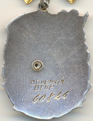 - Вариант 2. Клеймо «Монетный Двор». Номер выполнен вручную штихелем. Ушко ордена маленького размера. Минимальный известный номер – 17541, максимальный – 265957.